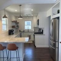 This mid-century modern styled home has been completely renovated with an open kitchen and living room. It's bright and airy with three bedrooms, two baths and brand-new furniture with a private backyard. It has a great yard with a fire pit, gas grill and located just down the road from a city park.